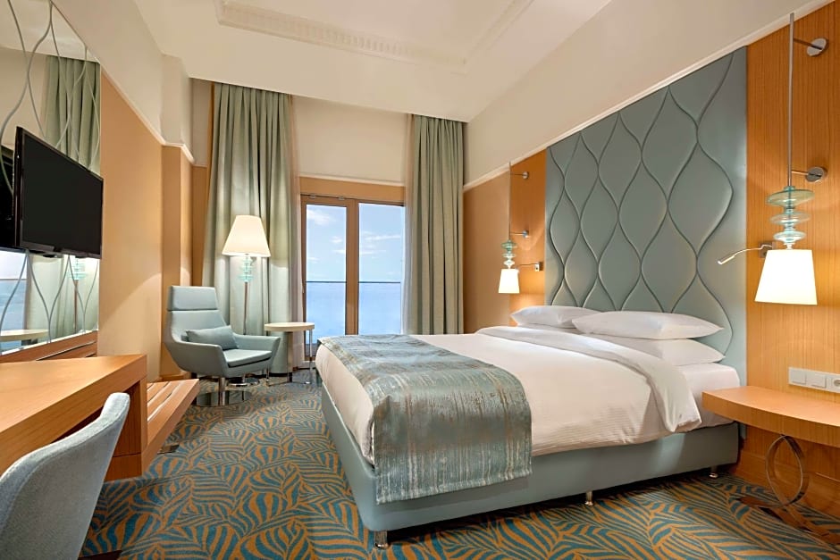 This spacious suite is consisted of of 2 living rooms, 1 separate bedroom and 1 bathroom with a bath and free toiletries. The suite's kitchenette is available for cooking and storing food. The air-conditioned suite offers a flat-screen TV, soundproof walls, a mini-bar, a tea and coffee maker as well as sea views. The unit offers 1 bed.